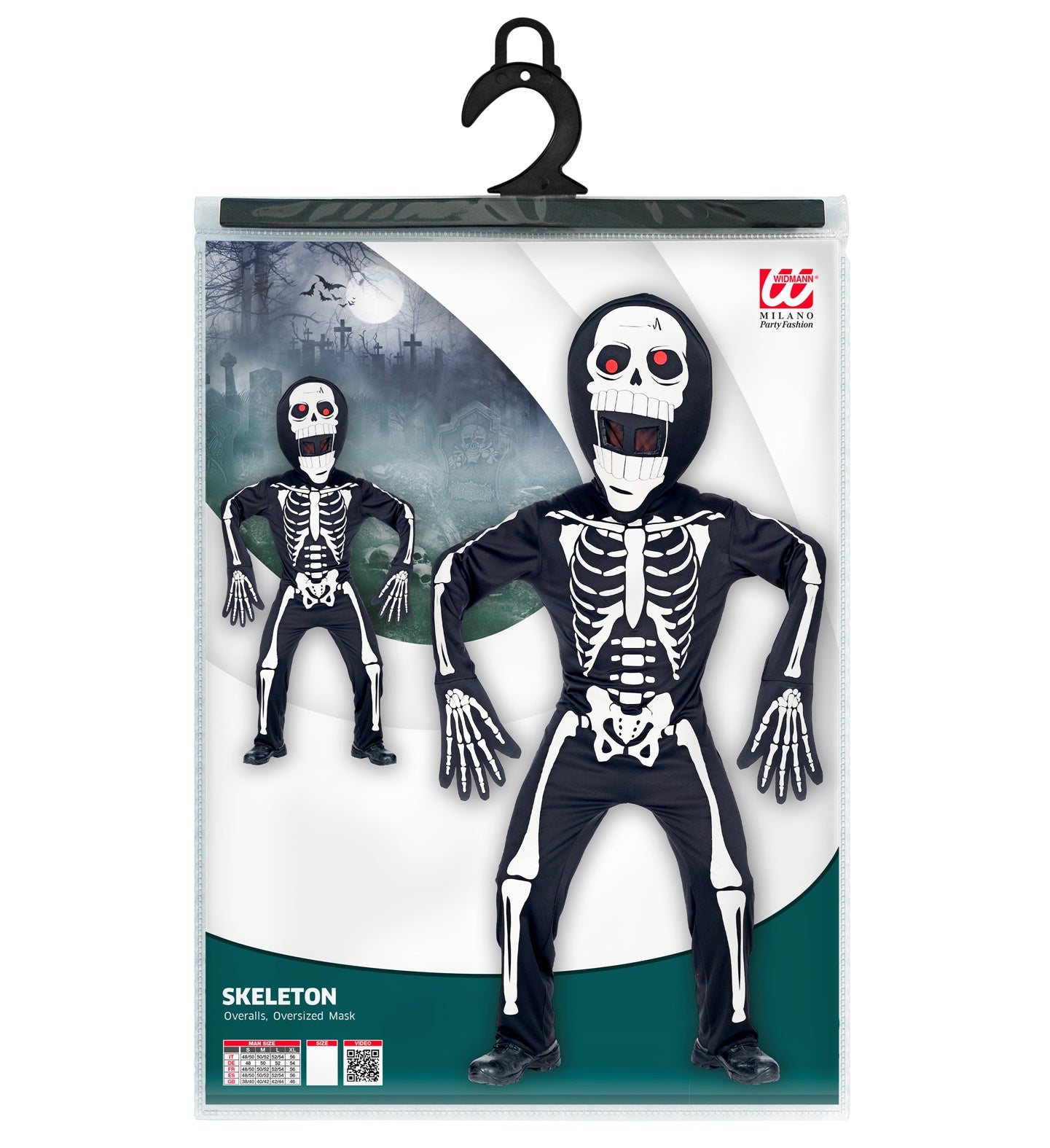 Skelettanzug mit großem Kopf