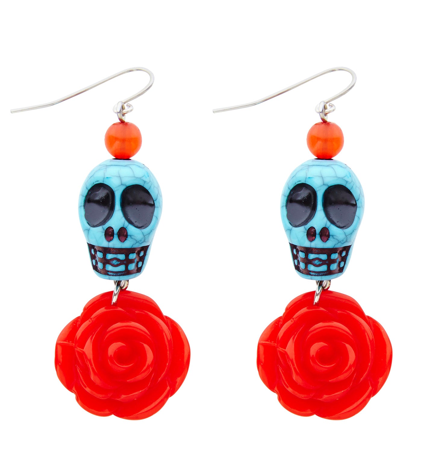 Ohrringe Totenkopf mit roter Rose Ohrringe mit roter Rose und blauem Totenkopf speziell für Halloween. Mädchen, es liegt mittlerweile... Mehr lesen