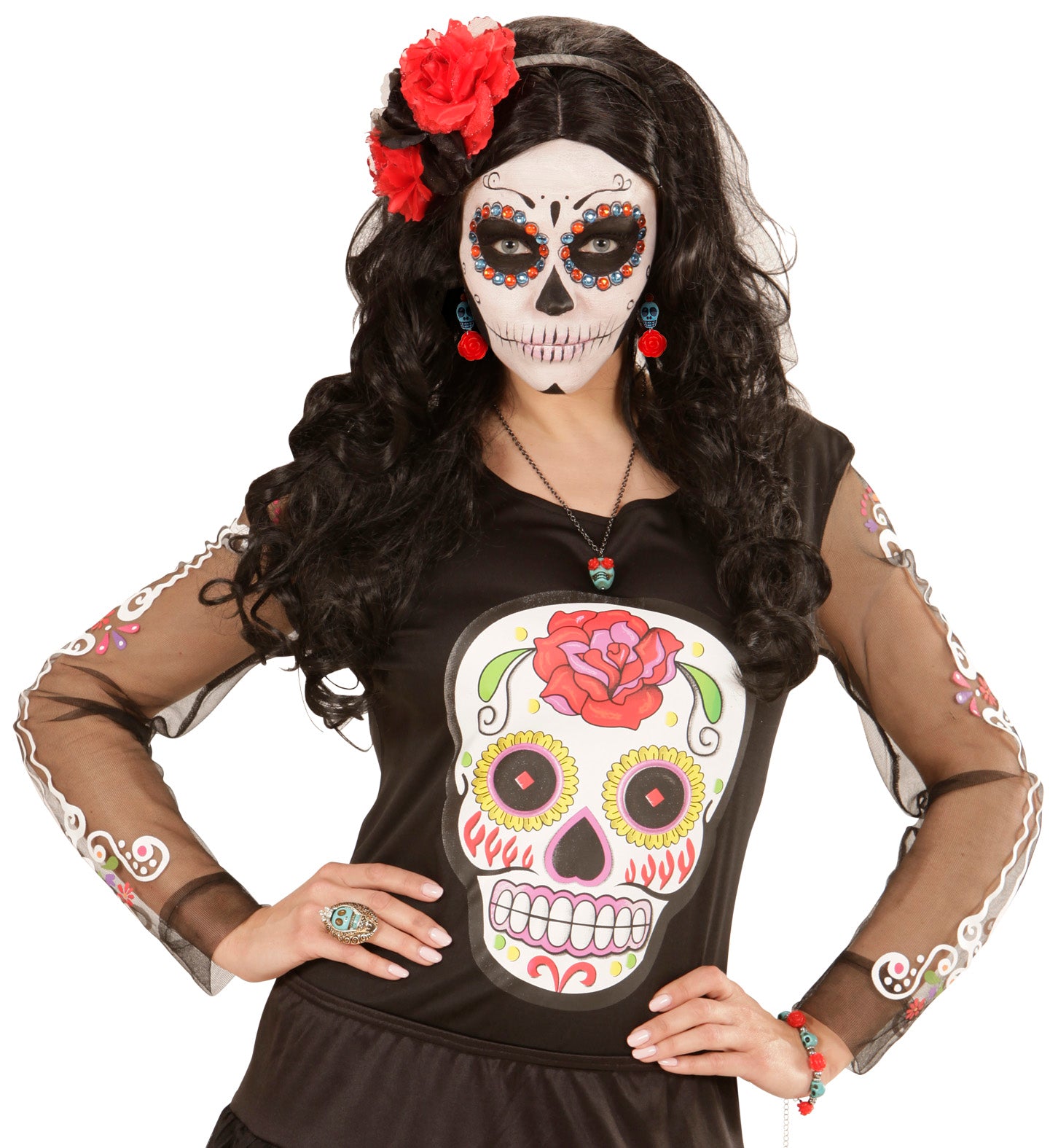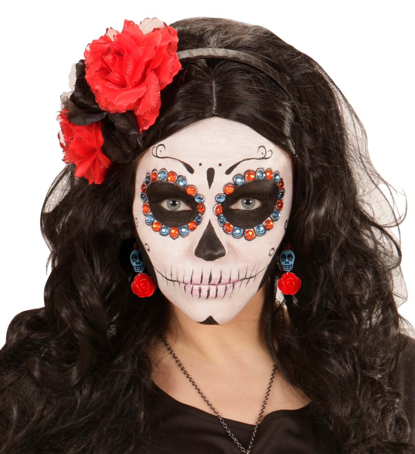Totenkopf mit Rosenohrringen