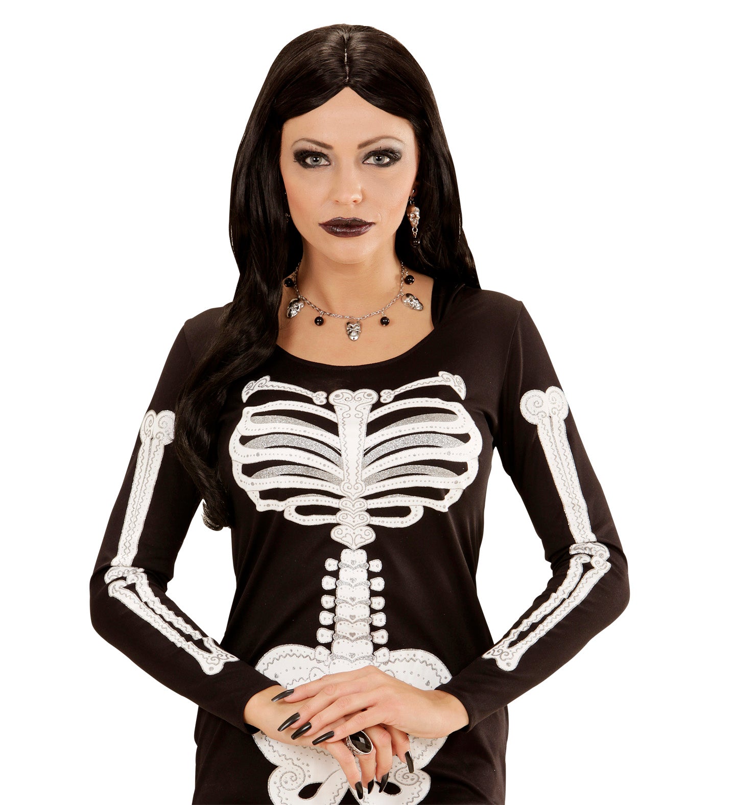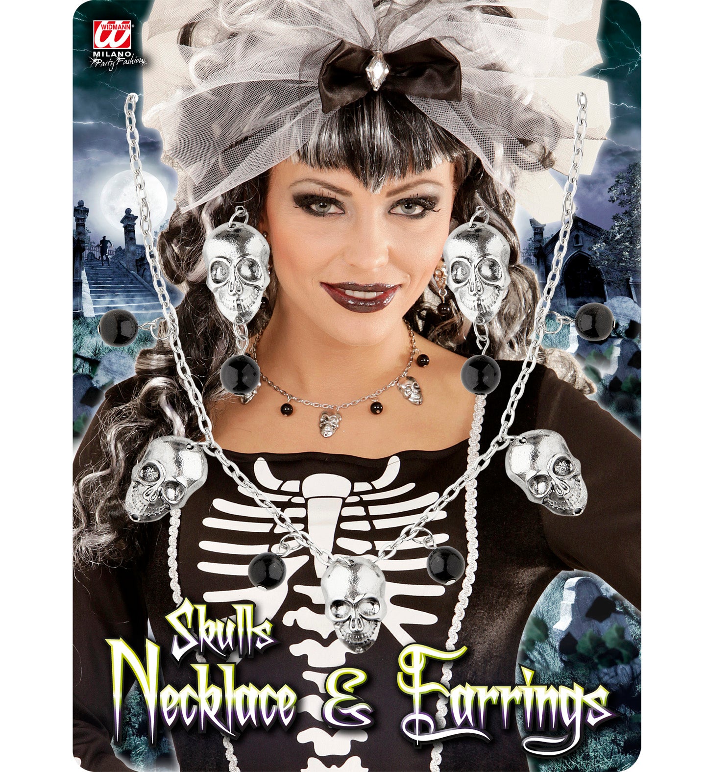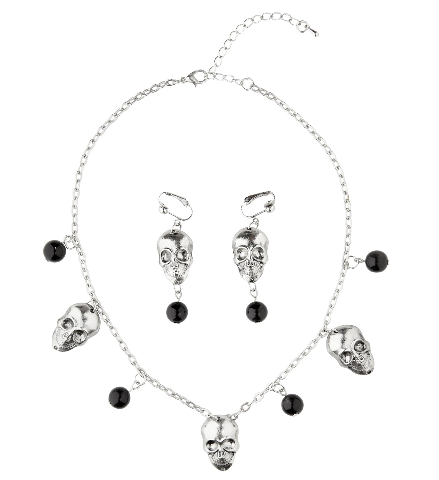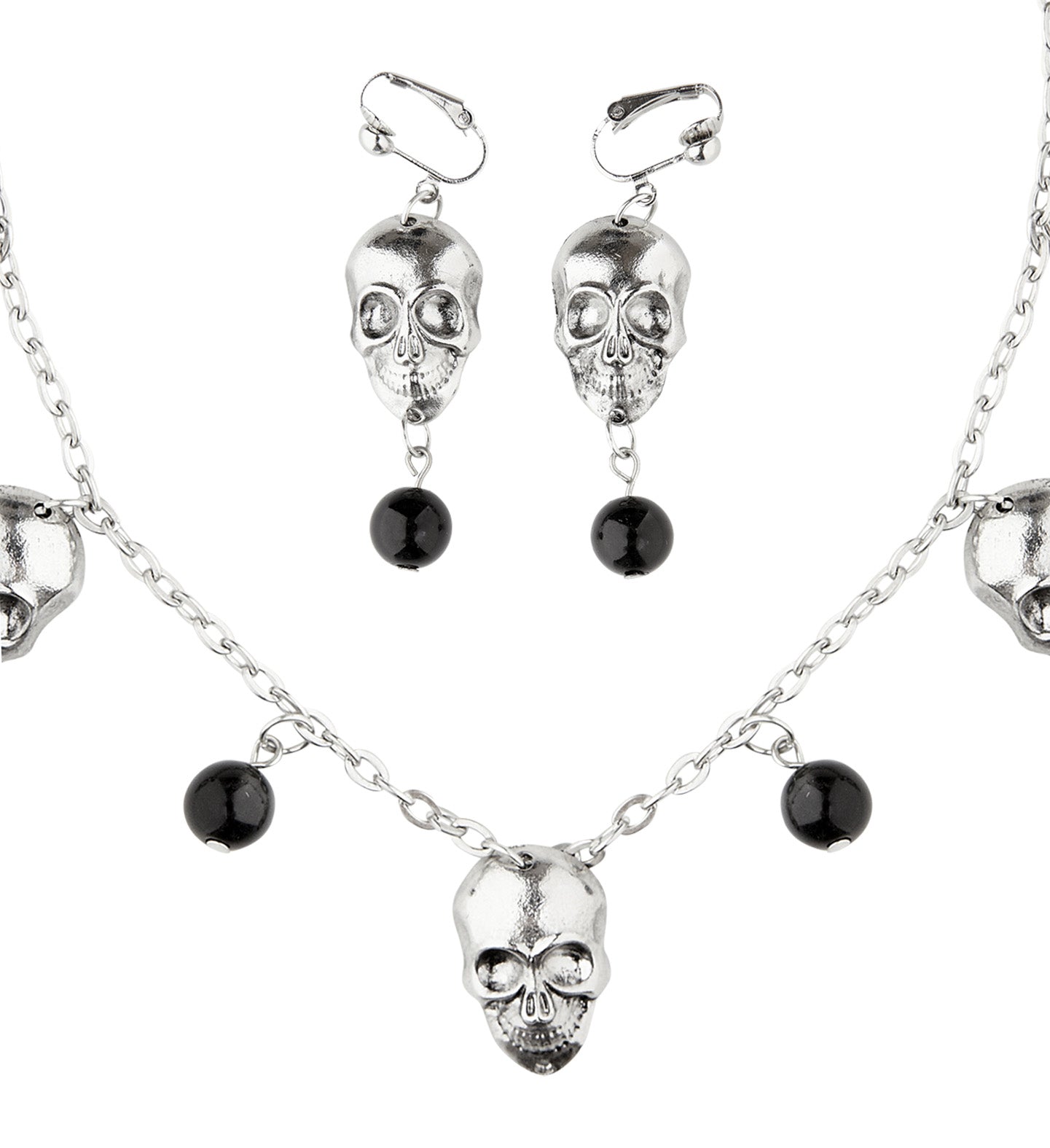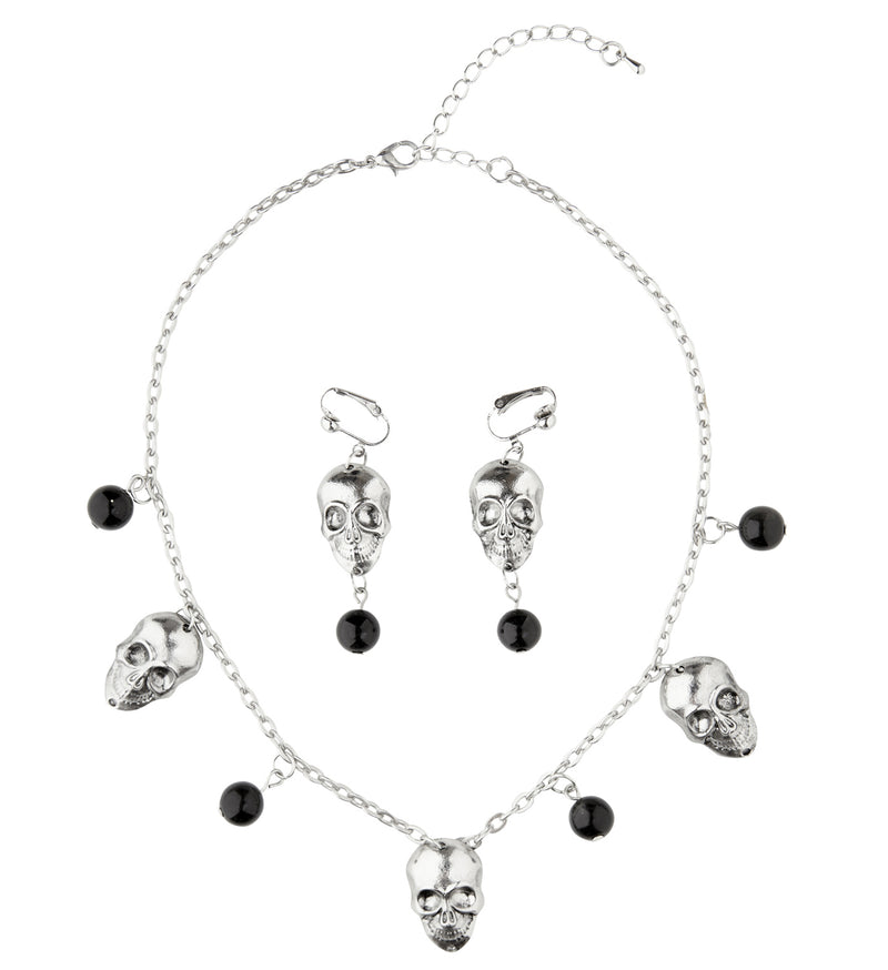 Totenkopf-Halskette mit Ohrringen