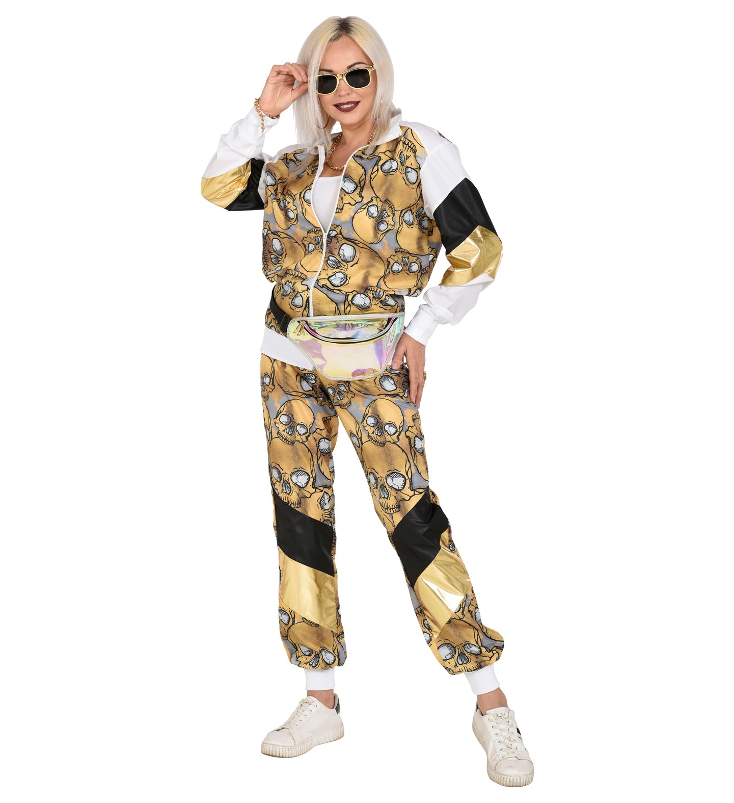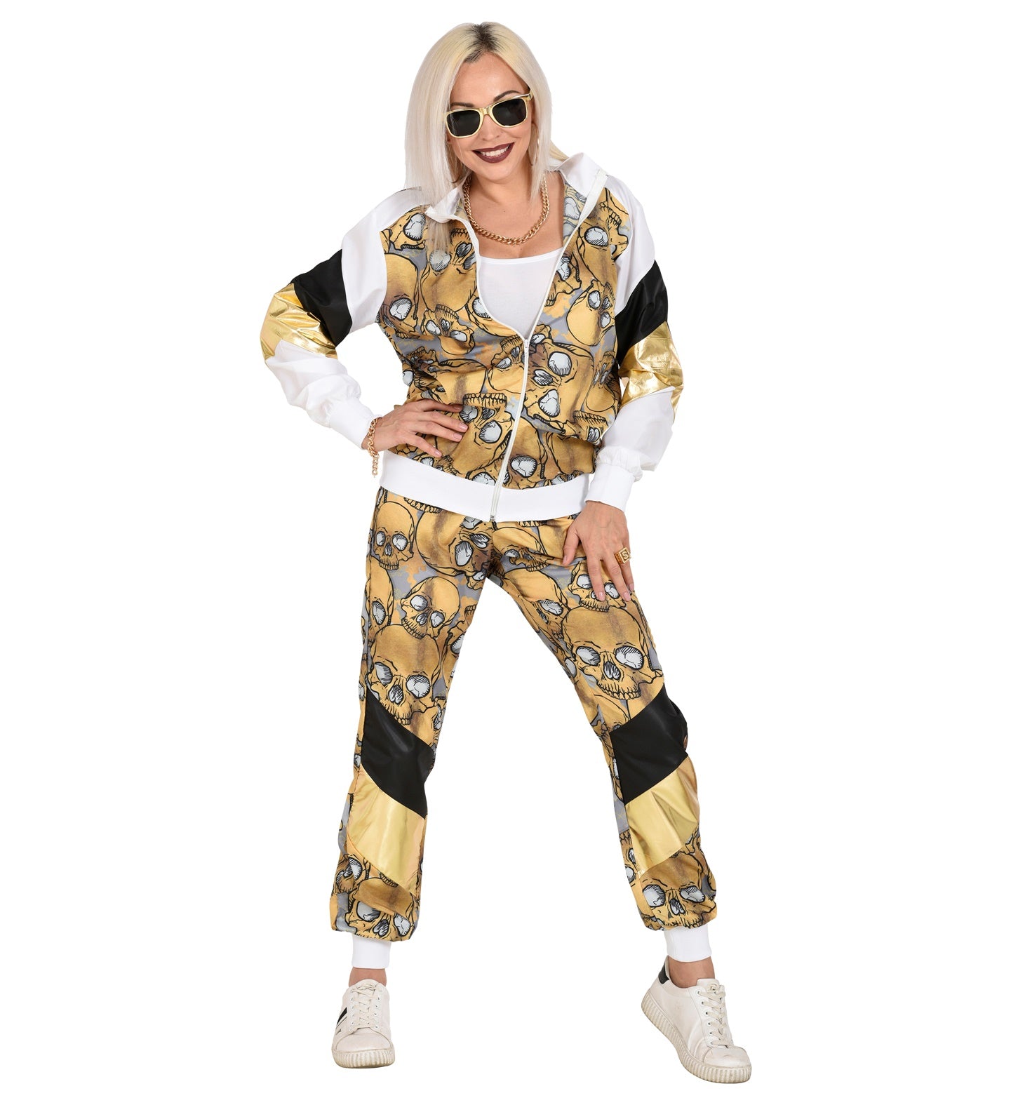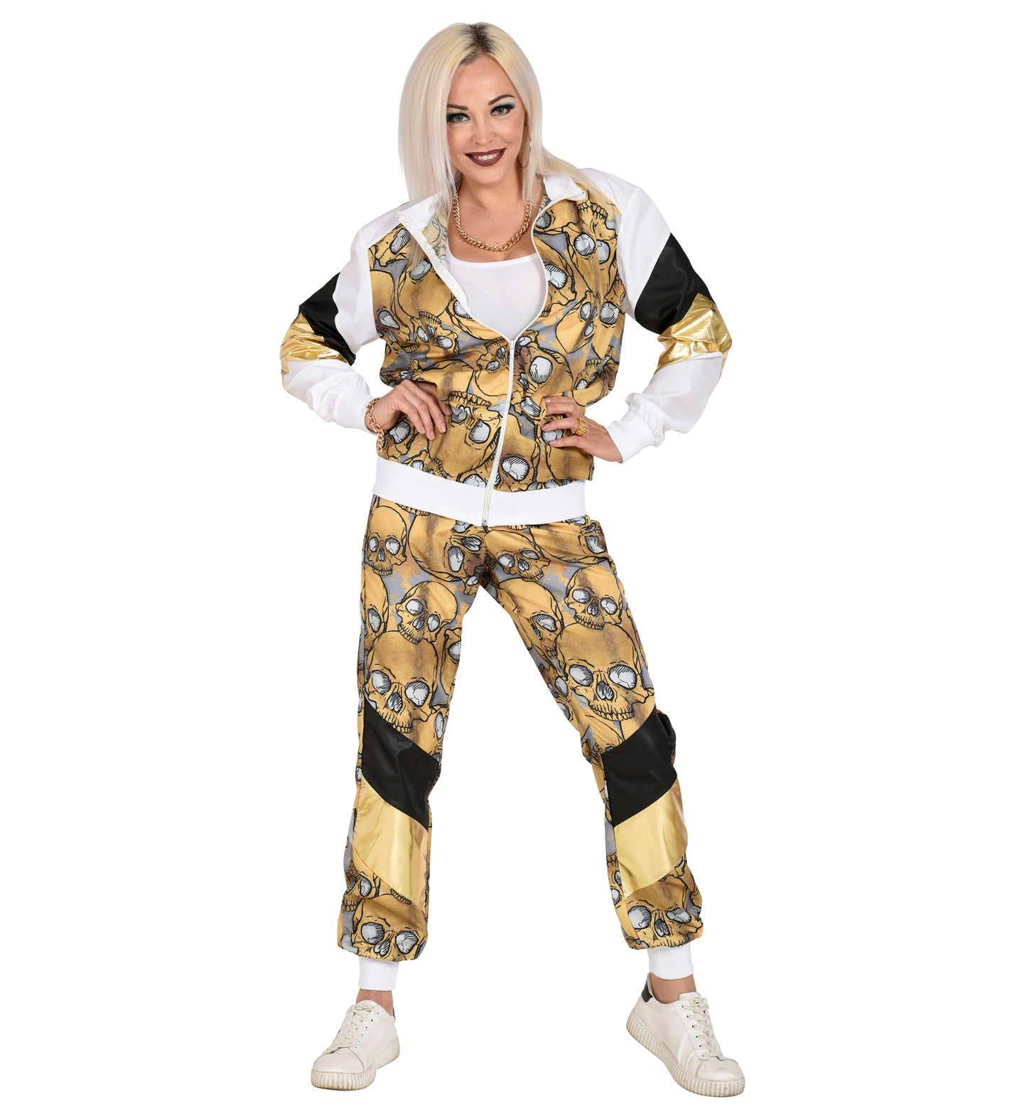 Trainingsanzug mit Totenköpfen in Gold
