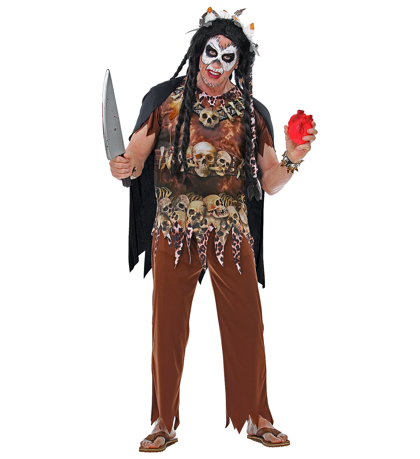 Wunderschönes Voodoo-Priester-Kostüm Owen für Herren, bestehend aus T-Shirt, Hose, Stirnband und Umhang Mehr lesen