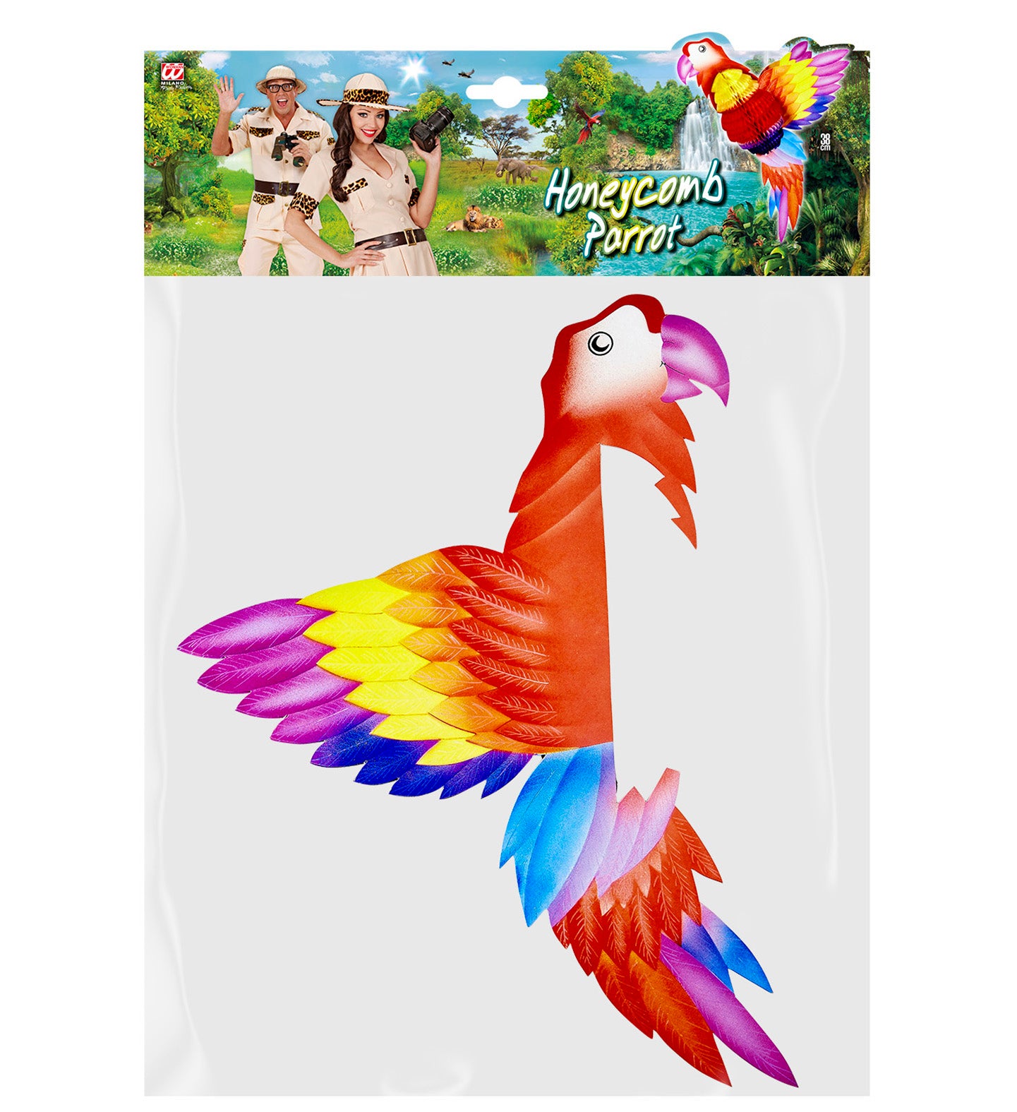 Schöne Papierdekoration Wabenpapagei von 38 cm. Mehr lesen