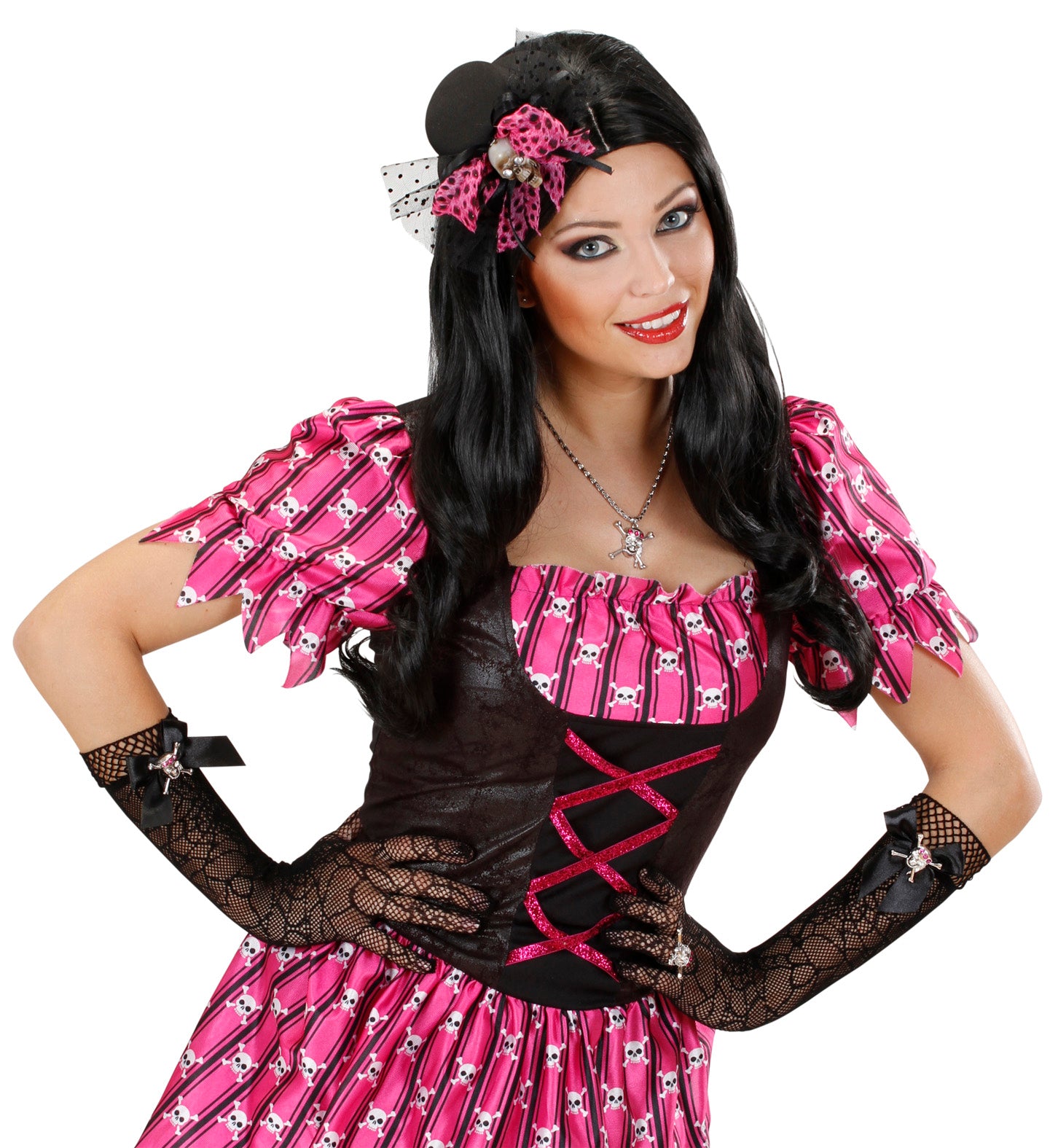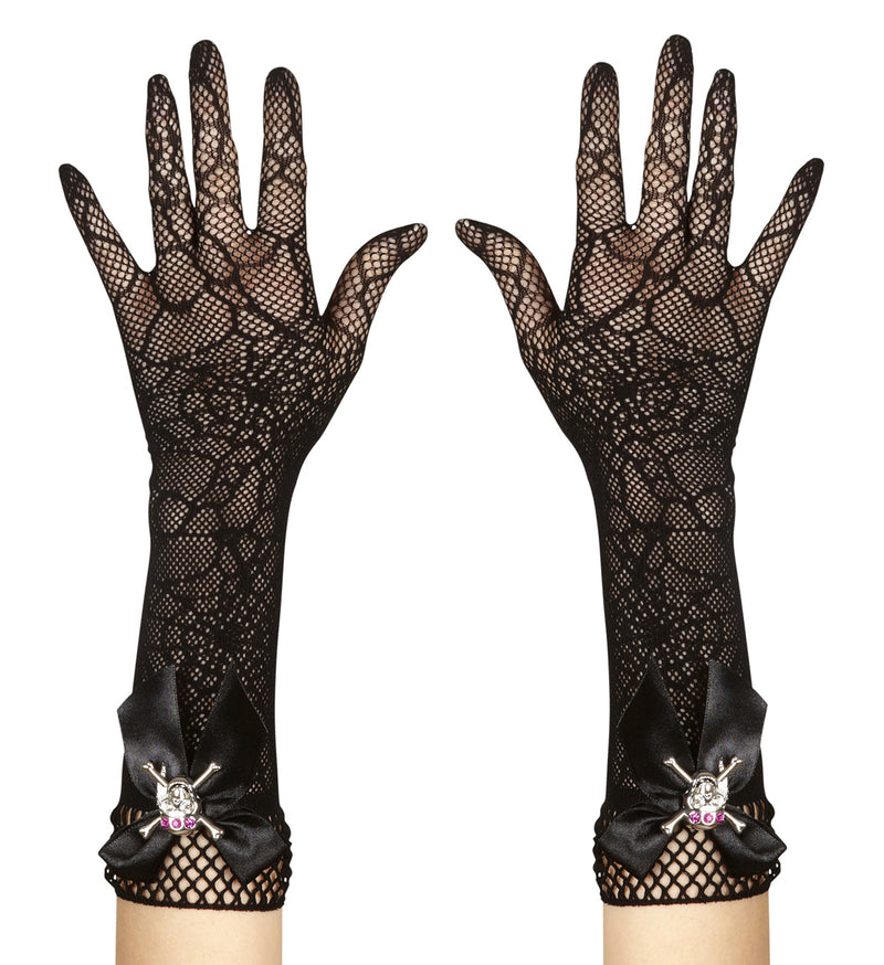 Handschuhe Spinnennetz mit Strass-Totenkopf